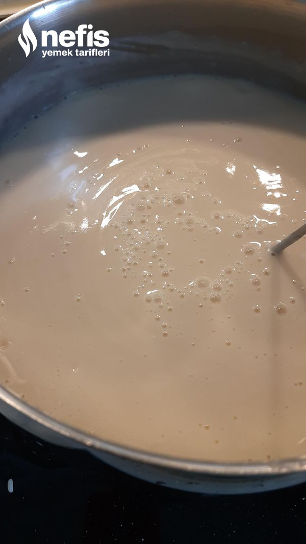 - Öncelikle vanilya hariç bütün gereçler tencereye alınır kaynayana dek çırpılır.