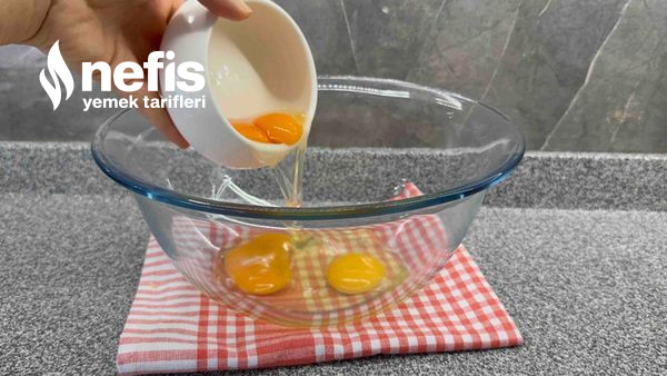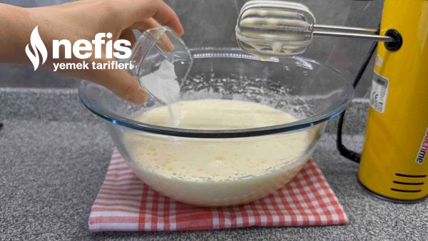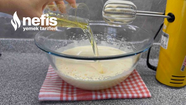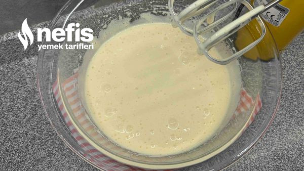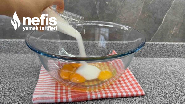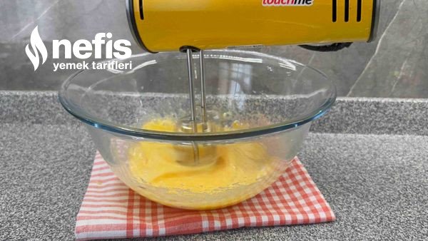 - Yumurta ve toz şekeri 3-4 dakika köpürüp kabarana kadar çırp.