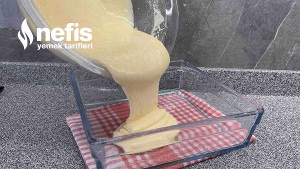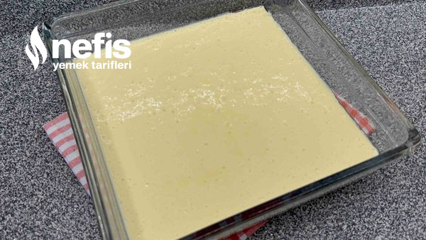 - Yağladığın küçük uzunluk kare borcama hamuru dök.