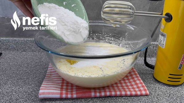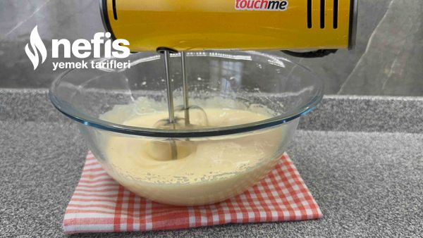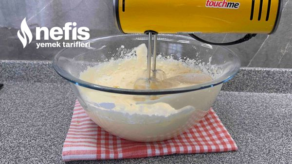 - Diğer gereçleri ekle tekrar çırp. Dikkat etmen gereken buğday nişastası olması, katiyetle farklı nişasta yada un katma dokusunu bozar.