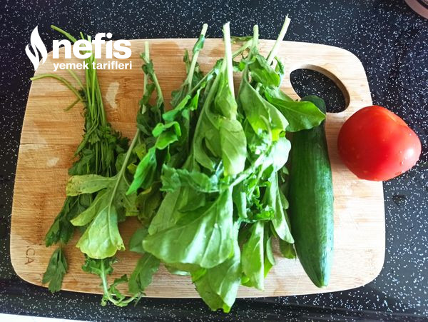 1. Domates, salatalık, roka ve maydanozu yıkayalım.