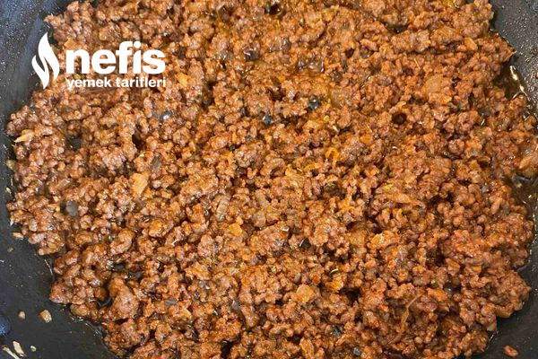 2. İçine kıymayı da koyarak kavurmaya devam edelim.