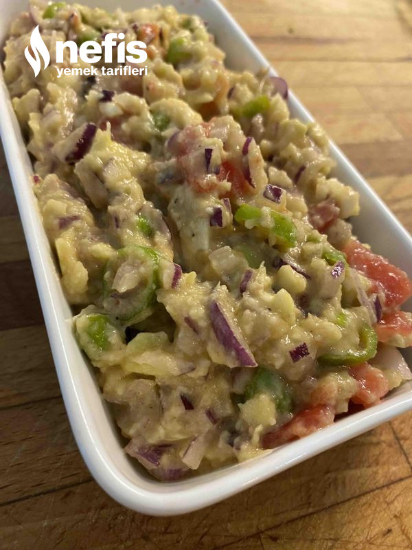 5. İçine küçük küçük doğranmış mor soğanı,limon suyunu,tuz ve karabiberi,domates ve biberi de koyarak hoş bir sos elde edelim.