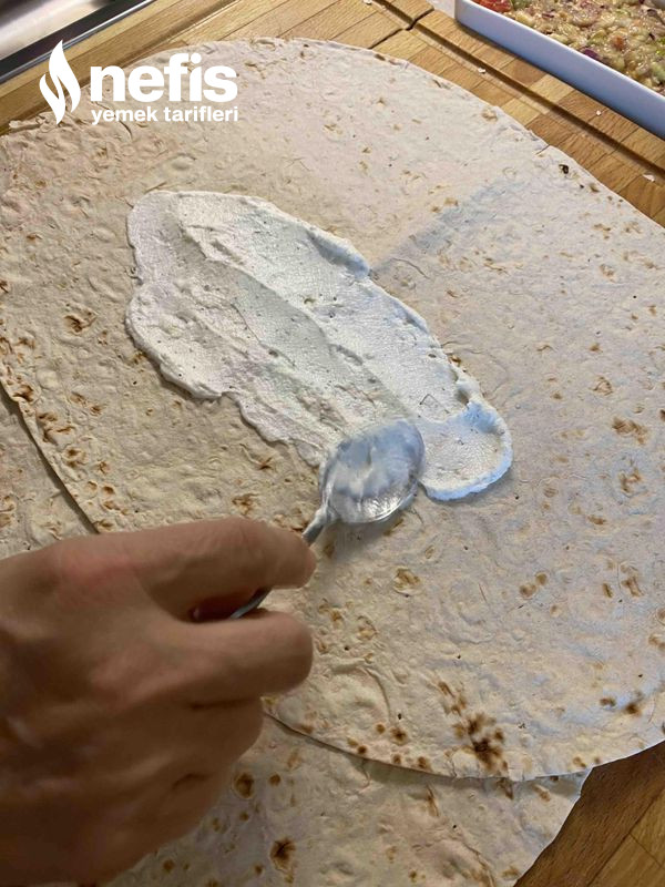 8. Önce yoğurt sosu,kıyma harcı,haşlanmış pirinç,barbunya,mısır,guacamole sos ve en son kaşar peynirini de koyarak evvel yanlardan hafif bastırarak sonra da öne gerçek sıkıca lavaşı sarıp tost makinesinde yahut fırında çok az kızartıp dilimleyerek servis edelim.
