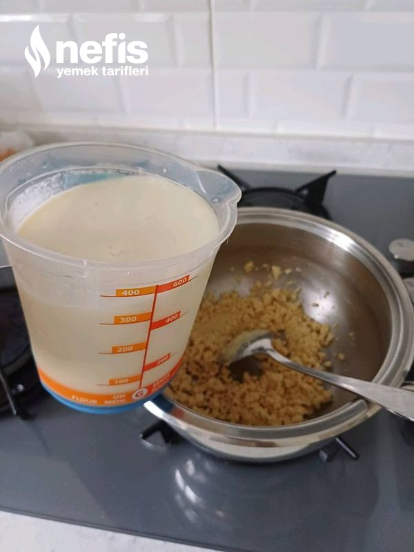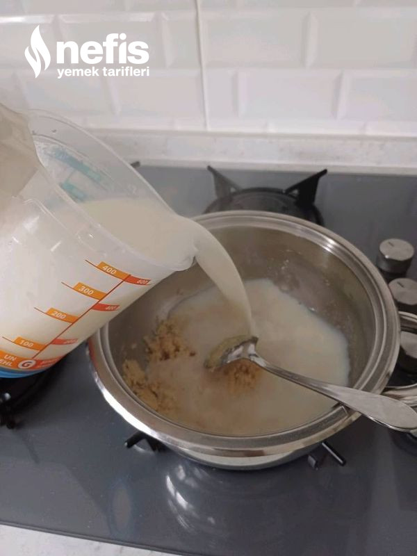 - Un gereğince kavrulduktan sonra ocaktan alalım soğuk sütü ekleyerek karıştırmaya devam edelim.