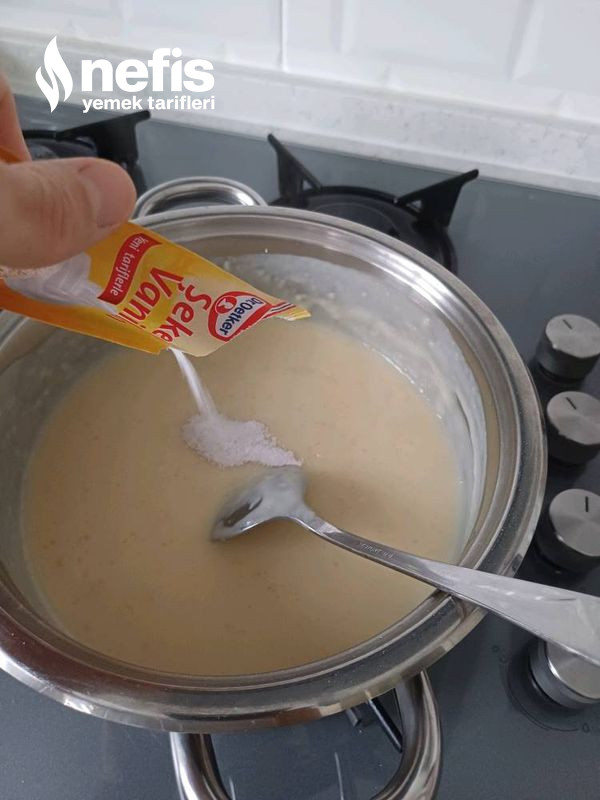 - Muhallebi kıvamına geldiğinde ocaktan alalım vanilyayı ekleyelim güzelce karıştıralım.