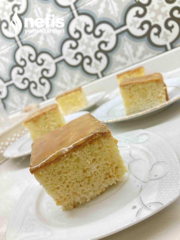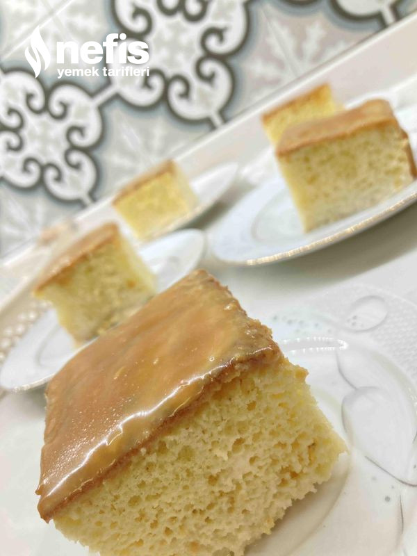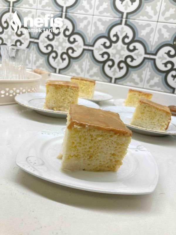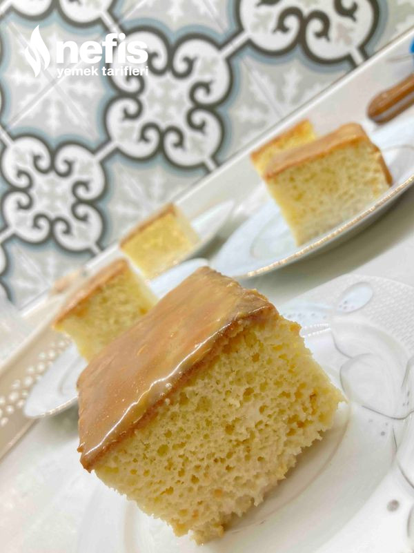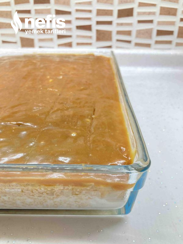 - Soğuyan karamel sosu buzdolabında bekleyen kekin üzerine dökün.