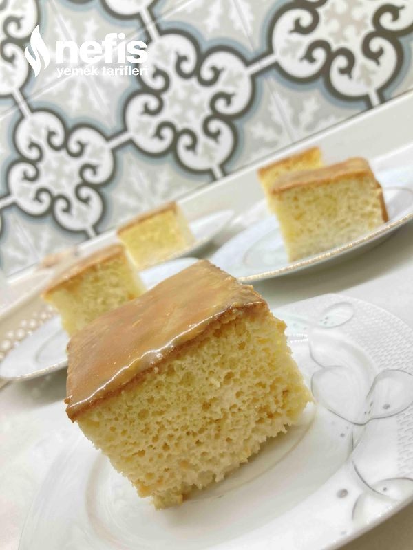 - Fırından çıkan keki oda sıcaklığında 10 dakika soğumaya bırakın. Sonra üzerine çatal yahut şişle delikler açın.
