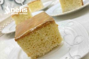 - Fırından çıkan keki oda sıcaklığında 10 dakika soğumaya bırakın. Sonra üzerine çatal yahut şişle delikler açın.