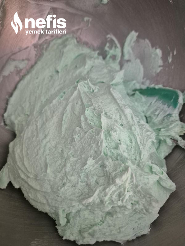 5. Bu ortada üzerinin kremasını hazırlıyoruz. Tereyağını 5 dakika çırpıyoruz. Sonra pudra şekerini ve azar azar sütü ekliyoruz.