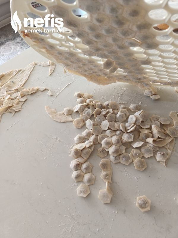 - Açma sürecimiz bittikten sonra kalıbı aksi çevirip tezgaha vurup mantıları çıkaralım.