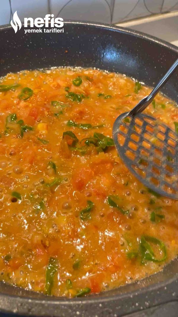 - Biberleri yıkayarak doğrayalım. Domateslerin kabuklarını soyalım ve küçük küçük doğrayalım. Tavaya tereyağını alarak eritelim ve biberleri ek edelim. Biberler kavrulduktan sonra domatesleri ek ederek kaynayana kadar bekleyelim.