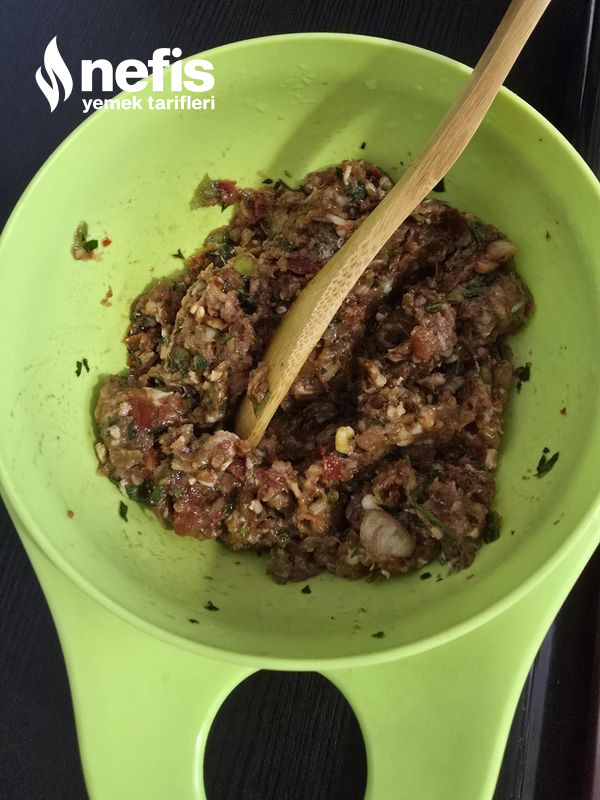 3. Baharatlarını ince kıydığımız maydanozu ve domates salçasını ekleyip tüm gereçleri güzelce karıştıralım.