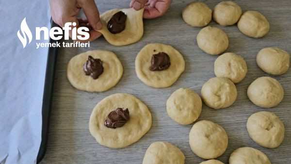 - Üzerine 1 tatlı kaşığı çikolata konur, sıkıca kapatılıp, tepsiye konur.