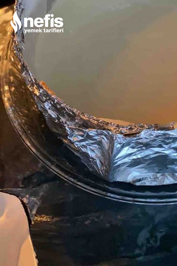 - Kalıbımızın dört etrafını yağlı kağıtla saralım. Dışını da folyoyla.