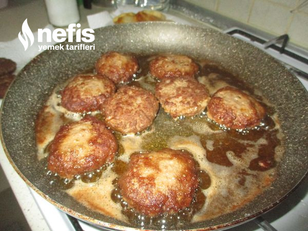 - Köfte hamuru materyalleri derin bir kapta yoğuralım. Buzdolabında 15 dk dinlendirelim. Sonra çıkarıp yumurta büyüklüğünde kesimler koparıp yuvarlayalım, bastıralım kızgın sıvı yağ da iki tarafını çevirerek çok az kızartalım. Havlu kağıt serilmiş tabağa alalım.
