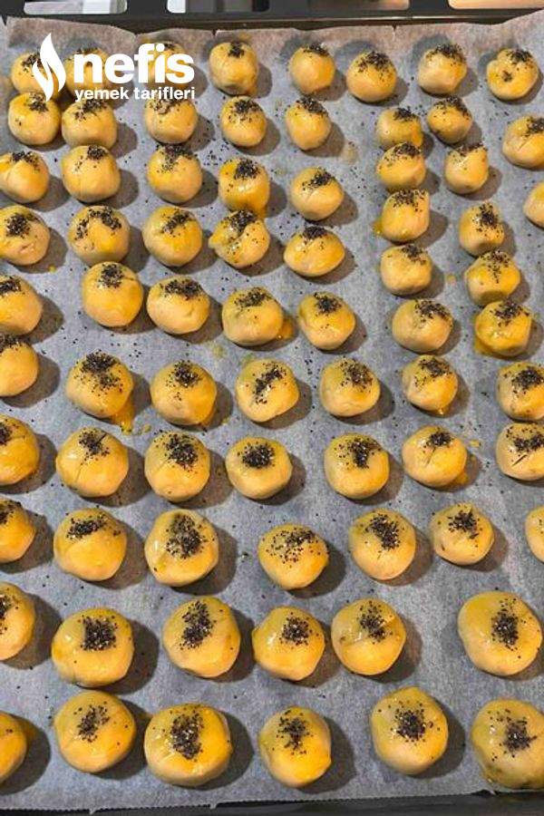 - Minik toplar halinde yuvarladığımız hamuru tepsiye küçük aralıklarla dizelim.