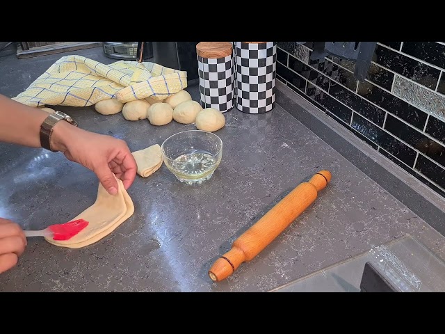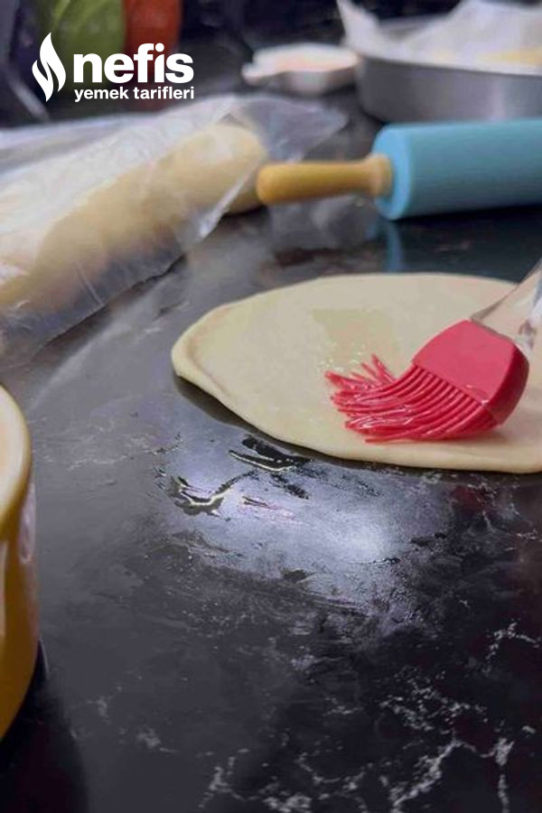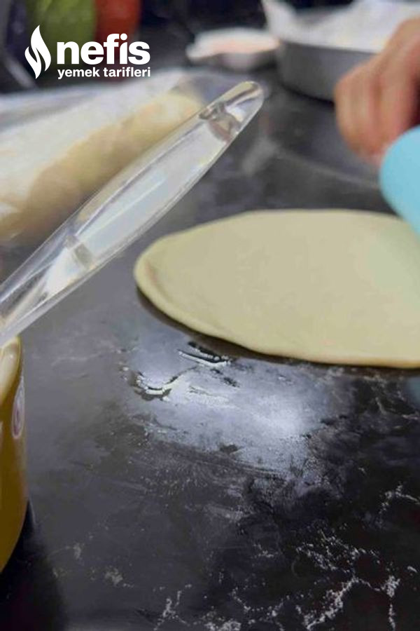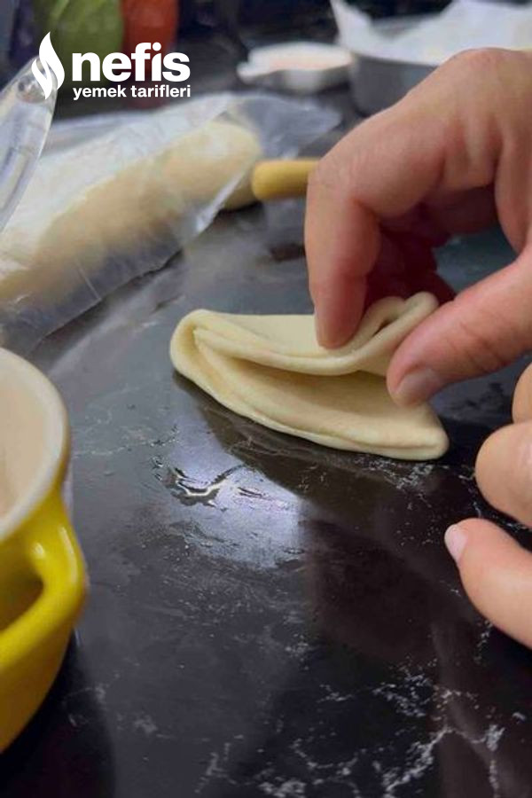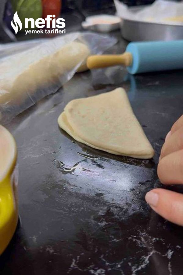 - Bezelerin üzerine bir poşet kapatıp 10dk mayalandırıp yuvarlak açalım,arasında sıvı yağ sürüp tekrar katlayıp tekrar sıvı yağ sürelim ve tekrar katlayıp üçgen biçimine getirelim.