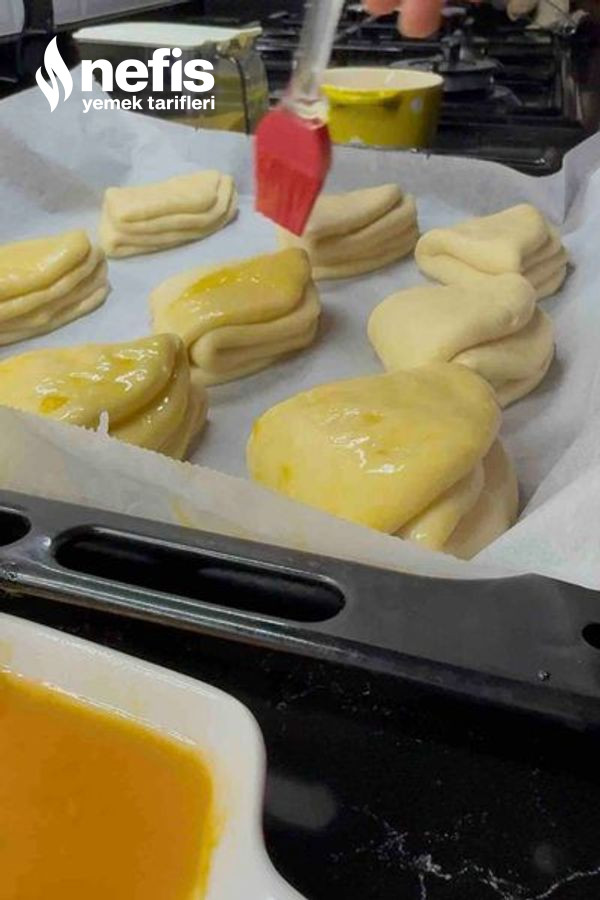 - Hamur bitene kadar tıpkı süreci yapıp 15-20dk tepsi mayasından sonra yumurta sarısı sürüp dilerseniz susam da serpebilirsiniz.