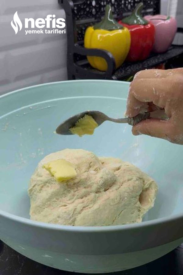- Unu da yavaş yavaş ekleyerek hamuru yoğurmaya başlayalım, yoğururken tuzunu ek edelim son olarak tereyağını ekleyip hamuru toparlayalım ve ılık bir yerde yarım saat mayalandıralım.