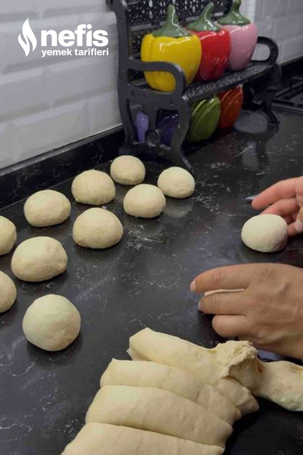 - Mayalanan hamuru tezgaha alıp havasını alalım ve uzun şeritler yapıp kesip bezeler yapalım.