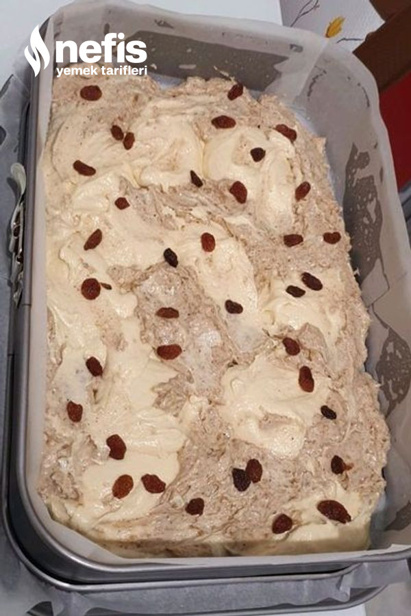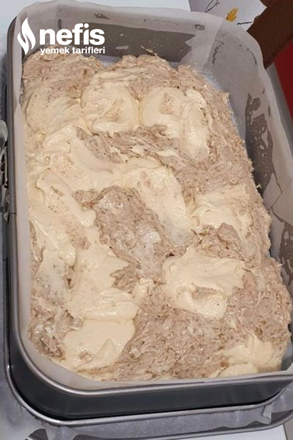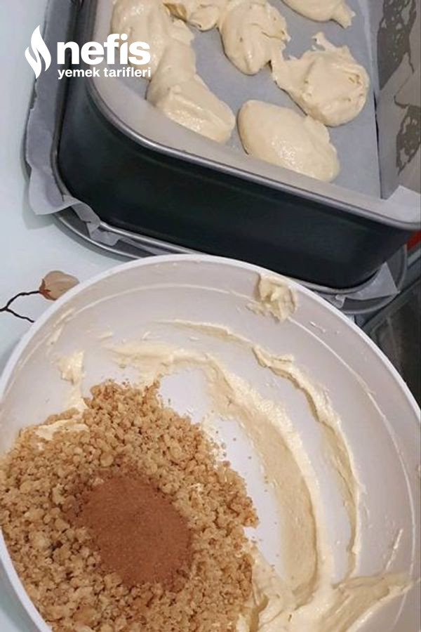 - Kek kalıbımıza bir spatula ile hamurumuzu koyalım biraz ayırdığımız hamurumuzun içine, ceviz, tarçın ekleyip karıştıralım ve kalıbımıza koyalım hamurumuzu.