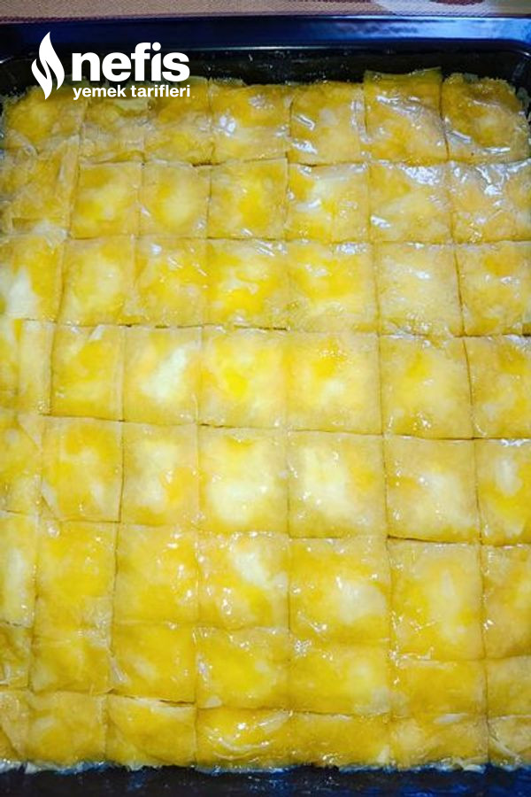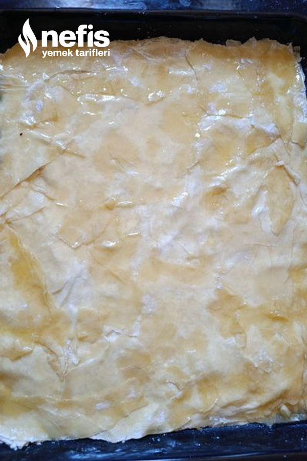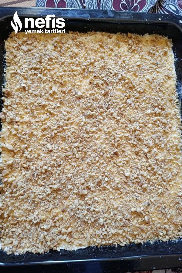 - Sonra tepsiye koyup üzerine biraz tereyağı gezdirip ceviz serpin daha sonra kalan başka hamurlarımızı da birebir biçimde açıp üzerine koyup eşit halde kare kare kesip üzerine tereyağını gezdirin.