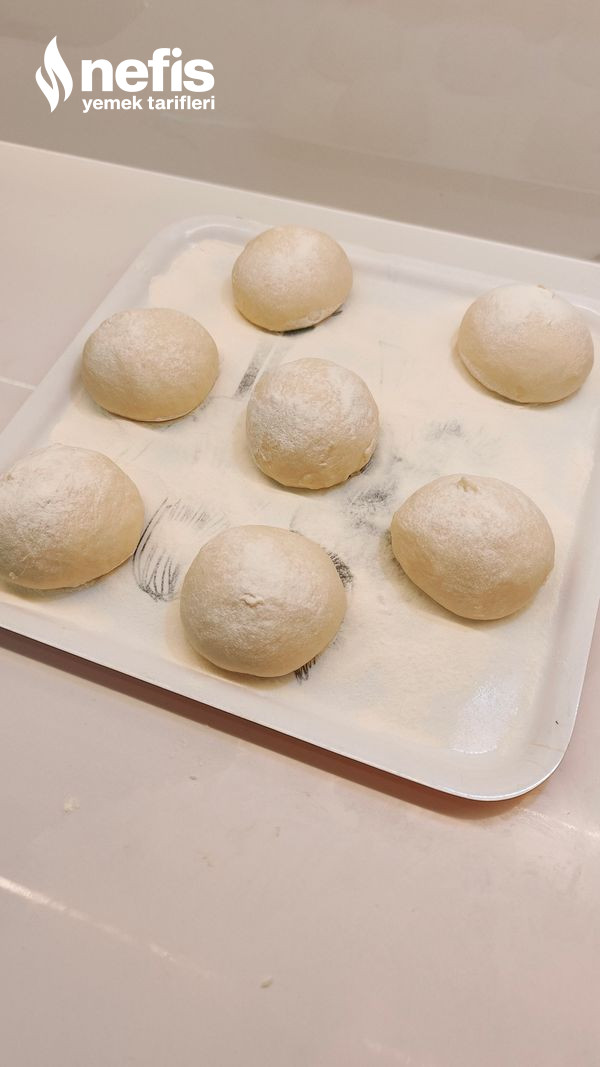2. Hamuru 6 eşit modüle bölüp yumaklar oluşturun bir tepsiye yumaklarınızı koyup üzerini streç sinemayla kapatıp 1 saat mayalanmaya bırakın.