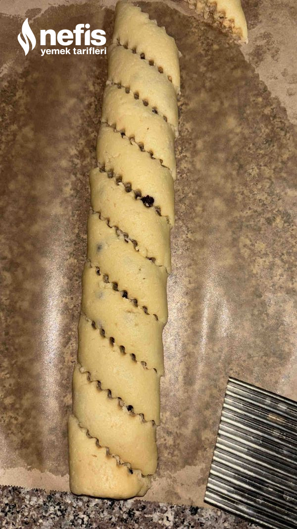 9. Tırtıklı bir aparat yahut bıçakla rulo yaptığımız hamurumuzu eşit ölçüde keselim tepsiye alıp üzerine yumurta sarısı sürelim.