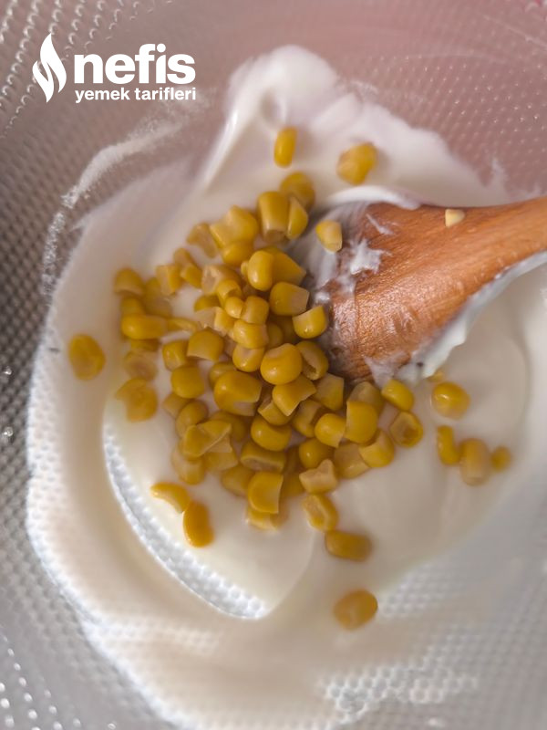 2. Bir kaba yoğurt, mayonez, sarımsağı koyalım. Yeterlice karıştıralım.