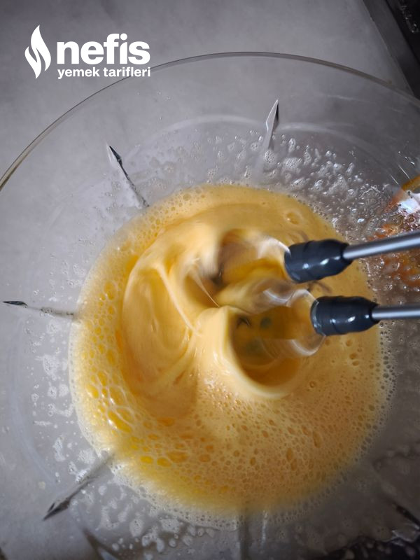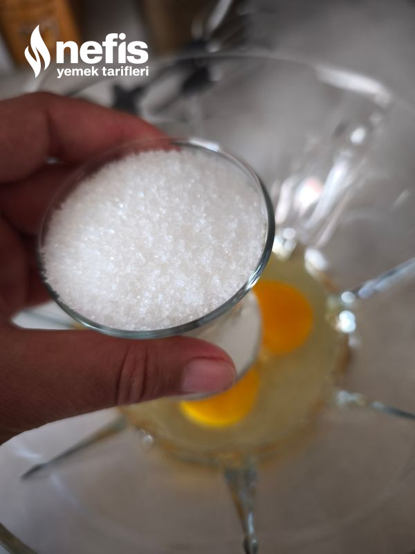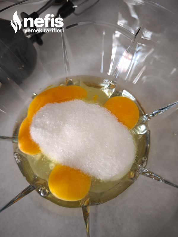 2. Daha sonra yumurta ve şekeri güzelce çırpalım.