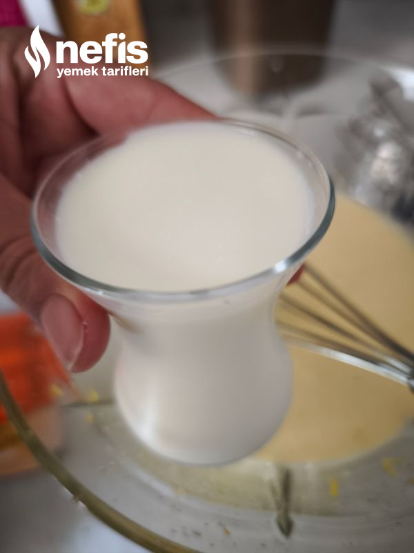 3. Süt,sıvı yağ, ceviz içi limon kabuğu koyup karıştıralım.