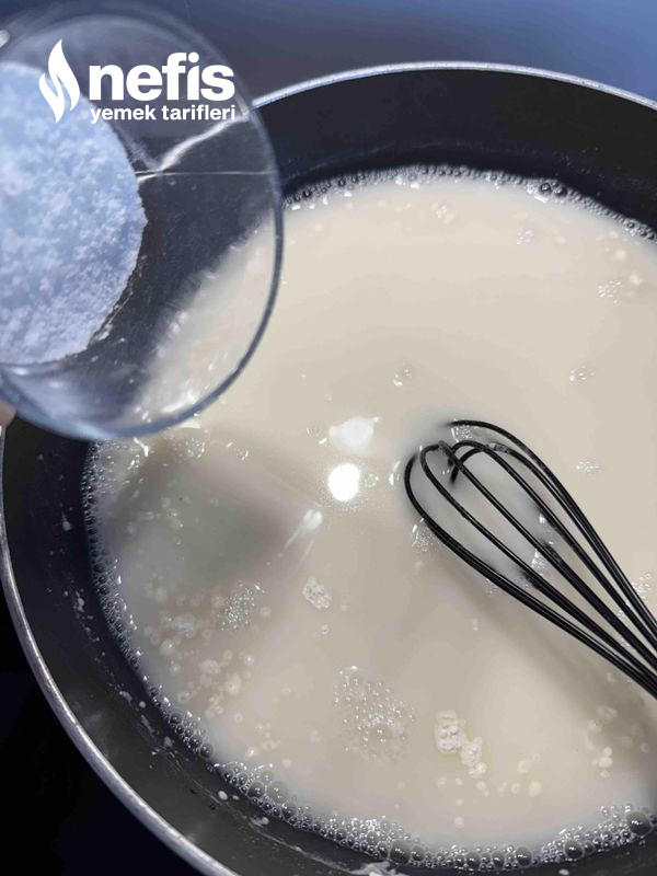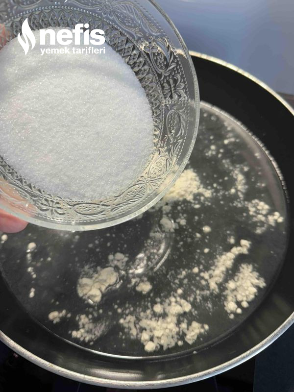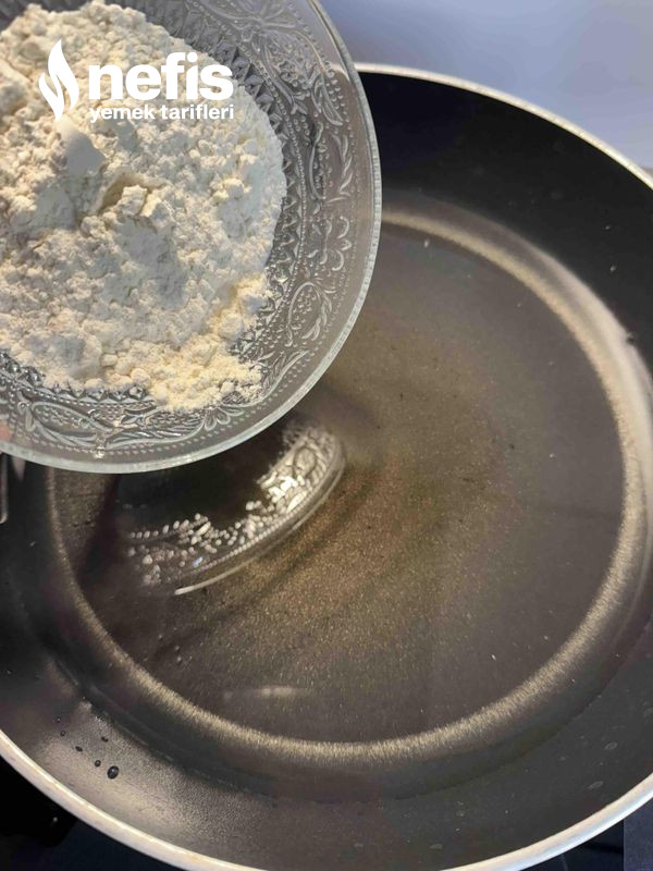 3. Tencereye suyu nişastayı ve unu alıp karıştırın.