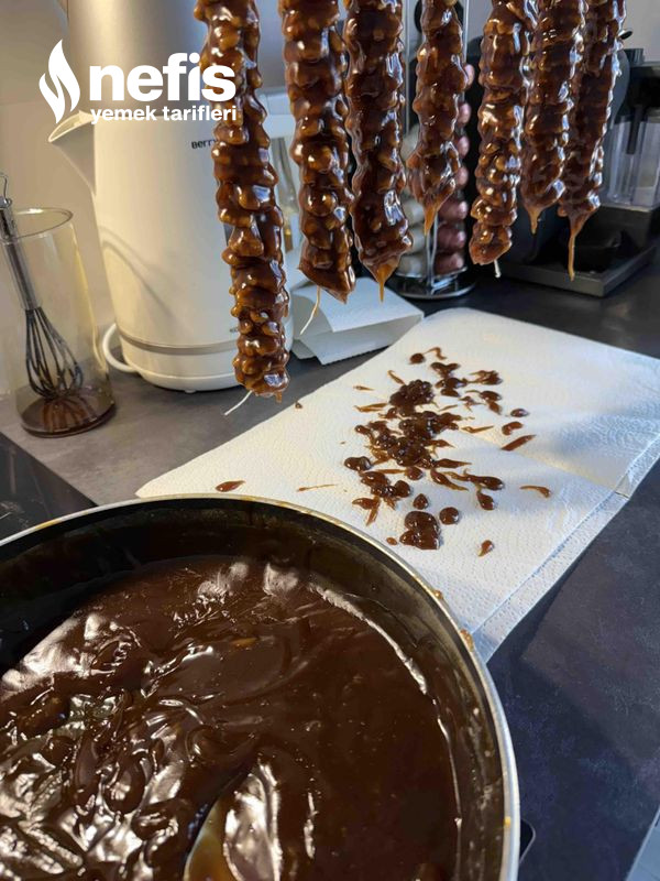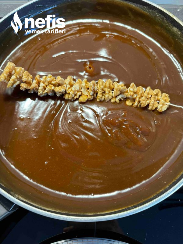 6. Sonrasında ceviz sucuklarını tencereye daldırın ve her yeri kaplanana kadar bulayalım.