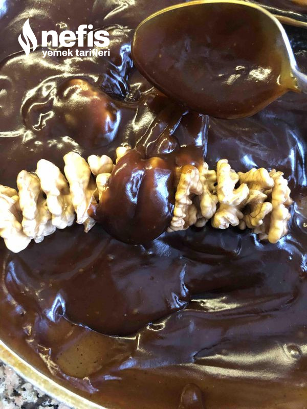 - Göz göz olup kaynamaya başlayınca cevizleri içine batırıp her tarafını bulayalım.