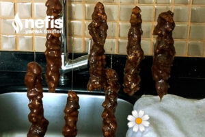 - Son olarak ipe dizdiğiniz cevizleri tencere de ki macuna kaşık yardımı ile bulayın.