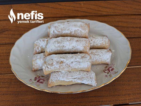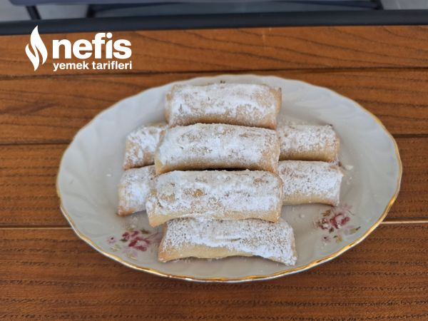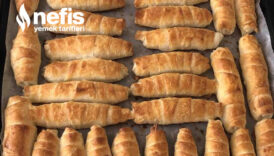 - Dinlenen hamurunuzdan ceviz büyüklüğünde toplar koparıp merdane yardımıyla ince uzun açın, içine elmalı harçtan koyup rulo biçiminde sarın.