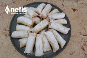 - Dinlenen hamurunuzdan ceviz büyüklüğünde toplar koparıp merdane yardımıyla ince uzun açın, içine elmalı harçtan koyup rulo biçiminde sarın.