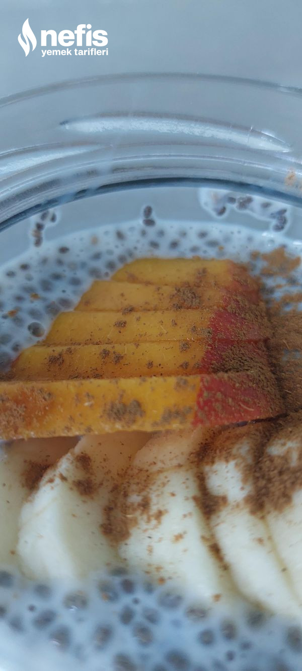 3. Ben akşamdan koydum daha sonra sabah da üzerine yarım muzu ,yarım şeftaliyi dilimledim ve biraz tarçın ekledim ,tadı hafif ve lezzetli tam bir diyet tatlısı.