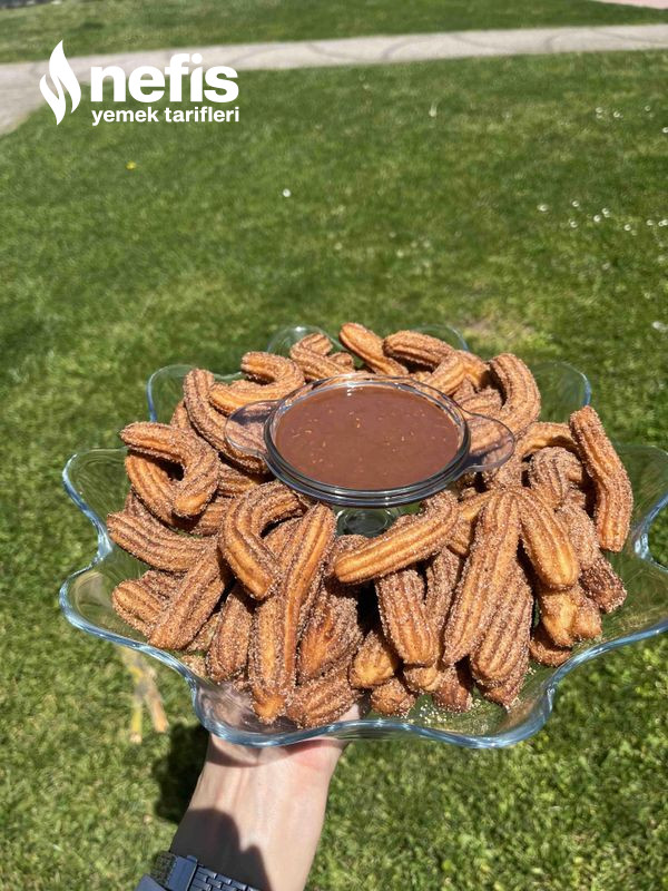 - Pişen churroslar şeker ve tarçın karışımına bulanıp servis tabağına alınır.