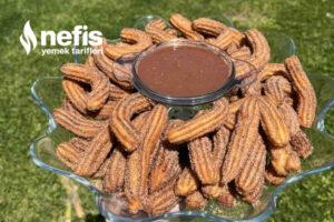 - Pişen churroslar şeker ve tarçın karışımına bulanıp servis tabağına alınır.