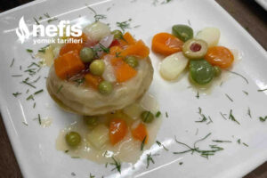 6. Sunum için; oda sıcaklığına geldikten sonra buzdolabında soğutalım. Üzerine zeytinyağı gezdirerek servis edelim. Tabağın içine ünce kıyılmış dereotu serpiştirip, sebzelerden çiçek yapabiliriz.