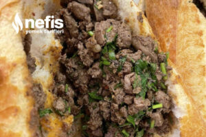 - Çıtır somun ekmeğimizi ikiye bölelim hafif tavanın yağına banalım ve içlerine ciğer dolduralım.