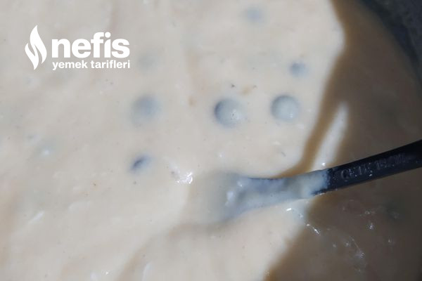2. Daha sonra vanilya ile unu azar azar ekleyip kabartma tozunu ekleyelim ve unun geri kalanını ekleyelim.