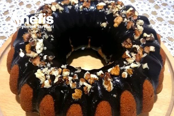 - Pişen kekimizi kalıptan çıkarıp çikolata sosunu döküyoruz.