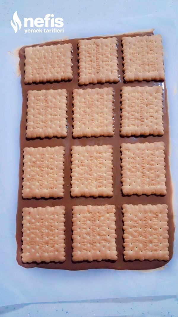 - Üzerine bisküvileri aralıklı bastırmadan dizin buzdolabına kaldırın donsun.