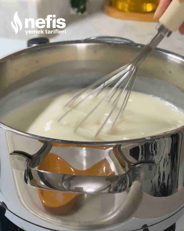 - Kremasını hazırlayalım. Tencereye sütü, unu, şekeri, nişastayı, vanilini alıp karıştıralım ve ocağa alalım.