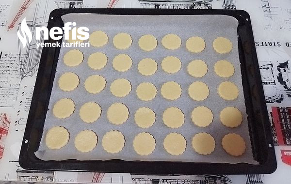 - Hamuru yağlı kağıt ortasında çok fazla inceltmeden açın kenarı tırtıklı aparatın küçük tarafıyla modüller çıkarıp yağlı kağıt serilmiş tepsiye yerleştirin.