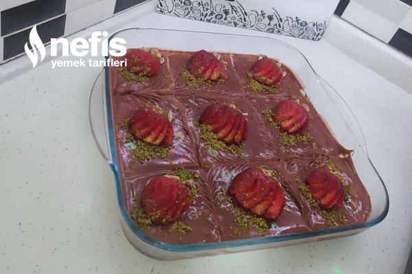 - Tatlıyı bu formda 3-4 saat kadar buzdolabında beklettikten sonra çilek ile süsleyip dilimleyerek servis edebilirsiniz. Deneyenlere şimdide afiyet olsun.