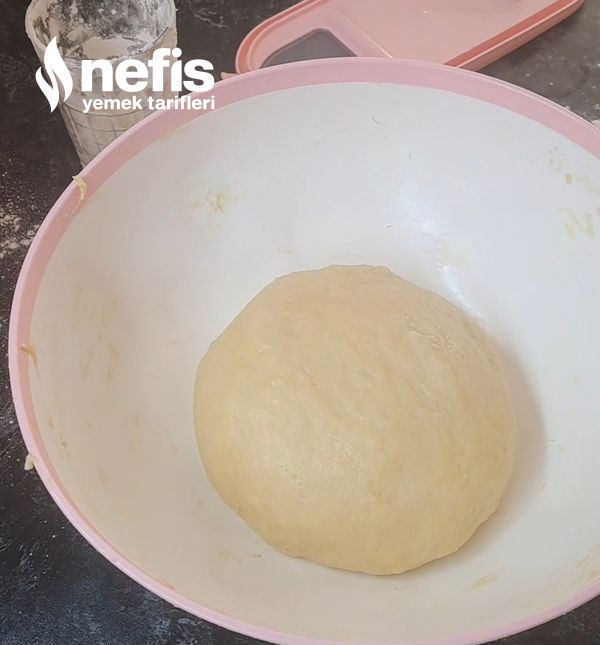 - Sonra sırasıyla tüm gereçleri ekleyelim. Yumuşak bir hamur elde edelim.
